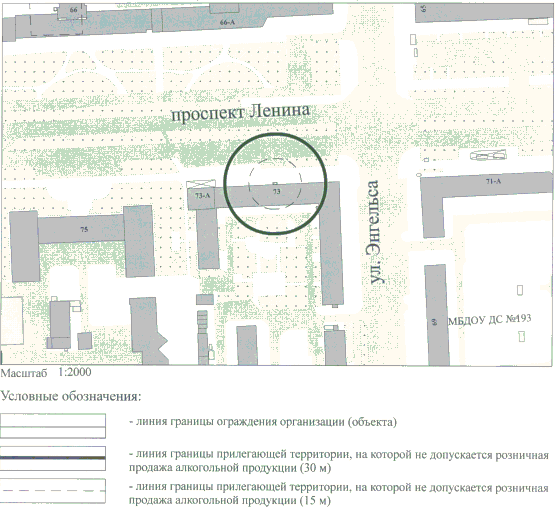СХЕМА ГРАНИЦ ТЕРРИТОРИИ, НА КОТОРОЙ НЕ ДОПУСКАЕТСЯ РОЗНИЧНАЯ ПРОДАЖА АЛКОГОЛЬНОЙ ПРОДУКЦИИ, ПРИЛЕГАЮЩЕЙ К ООО "ОПТИК-ЦЕНТР" ПО АДРЕСУ: Г. ЧЕЛЯБИНСК, ЦЕНТРАЛЬНЫЙ РАЙОН, ПР. ЛЕНИНА, 73 (НЕЖИЛОЕ ПОМЕЩЕНИЕ N 23)