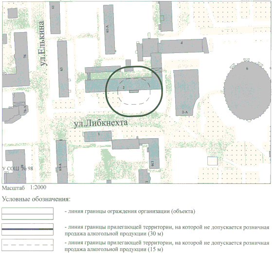СХЕМА ГРАНИЦ ТЕРРИТОРИИ, НА КОТОРОЙ НЕ ДОПУСКАЕТСЯ РОЗНИЧНАЯ ПРОДАЖА АЛКОГОЛЬНОЙ ПРОДУКЦИИ, ПРИЛЕГАЮЩЕЙ К ООО "ВОСТОЧНАЯ МЕДИЦИНА И КОСМЕТОЛОГИЯ" ПО АДРЕСУ: Г. ЧЕЛЯБИНСК, СОВЕТСКИЙ РАЙОН, УЛ. ЛИБКНЕХТА, 2-18