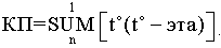 6. Формула расчета класса природной пожарной опасности в лесах в зависимости от условий погоды определяется как сумма произведения температуры воздуха (t°) на разность температур воздуха и точки росы (эта) за n дней без дождя (считая день выпадения более 3 мм осадков первым (1) днем бездождевого периода):