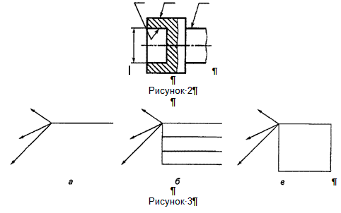 Линию-выноску, отводимую от линий видимого и невидимого контура, а также от линий, обозначающих поверхности, заканчивают стрелкой (см. рисунок 1б, в).