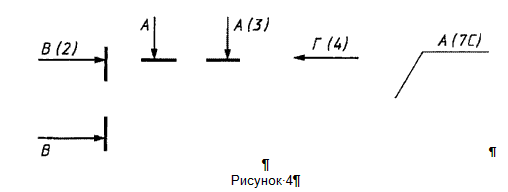 4.17. Для обозначения изображений (видов, разрезов, сечений), поверхностей, размеров и других элементов изделия применяют прописные буквы русского алфавита, за исключением букв Ё, З, Й, О, Ч, Х, Ъ, Ы, Ь, и, при необходимости, буквы латинского алфавита, исключая буквы I и O.