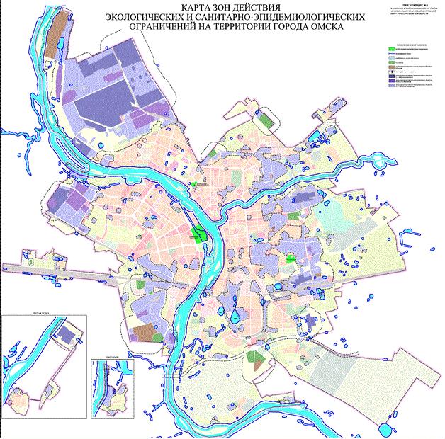 КАРТА ЗОН ДЕЙСТВИЯ ЭКОЛОГИЧЕСКИХ И САНИТАРНО-ЭПИДЕМИОЛОГИЧЕСКИХ ОГРАНИЧЕНИЙ НА ТЕРРИТОРИИ ГОРОДА ОМСКА