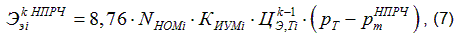 Э(k)_эi, руб. - экономическая составляющая эксплуатационных затрат, обусловленная для режима НПРЧ - изменением значения давления пара перед турбиной (в случае принятия соответствующего технического решения) в k-ом расчетном периоде регулирования, определяемая в соответствии с пунктом 19 Методических указаний;