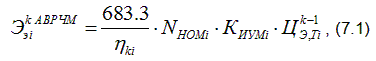 Э(k)_эi, руб. - экономическая составляющая эксплуатационных затрат, обусловленная для режима АВРЧМ - снижением КПД котла в связи с увеличением удельного расхода топлива на k-ый расчетный период регулирования, определяемая в соответствии с пунктом 20 Методических указаний;