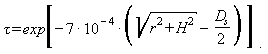 В.5.11. Коэффициент пропускания атмосферы тау рассчитывают по формуле:
