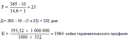 N_к/д - число койко-дней на 1000 жителей (утвержденный норматив по территориальной программе государственных гарантий, равен произведению уровня госпитализации на 1000 жителей на средние сроки лечения 1-го больного в стационаре);