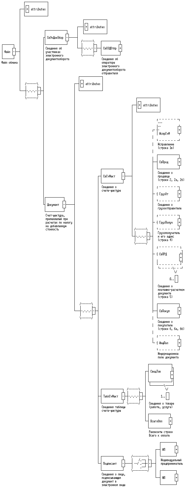 1. Настоящий документ описывает требования к XML файлам (далее - файлам обмена) передачи сведений счета-фактуры, применяемого при расчетах по налогу на добавленную стоимость, форма которого утверждена постановлением Правительства Российской Федерации от 26.12.2011 N 1137 "О формах и правилах заполнения (ведения) документов, применяемых при расчетах по налогу на добавленную стоимость".