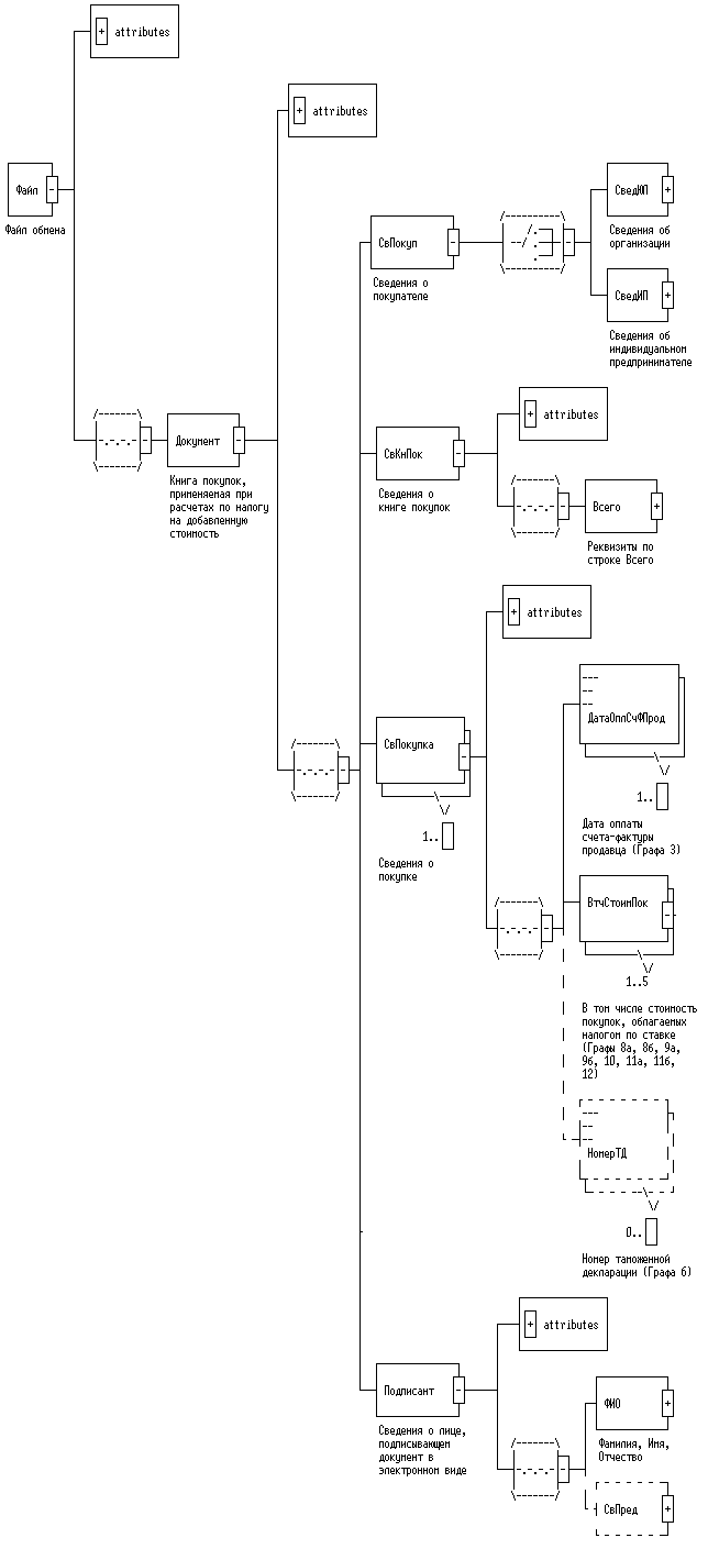1. Настоящий документ описывает требования к XML файлам (далее - файлам обмена) передачи сведений книги покупок, применяемой при расчетах по налогу на добавленную стоимость, форма которой утверждена постановлением Правительства Российской Федерации от 26.12.2011 N 1137 "О формах и правилах заполнения (ведения) документов, применяемых при расчетах по налогу на добавленную стоимость".