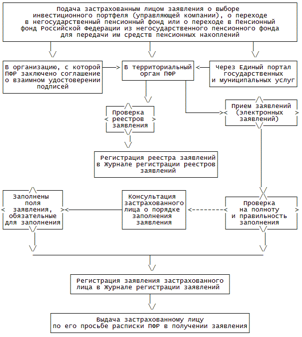 ПО ПРЕДОСТАВЛЕНИЮ ПЕНСИОННЫМ ФОНДОМ РОССИЙСКОЙ ФЕДЕРАЦИИ ГОСУДАРСТВЕННОЙ УСЛУГИ ПО ПРИЕМУ ОТ ЗАСТРАХОВАННЫХ ЛИЦ ЗАЯВЛЕНИЙ О ВЫБОРЕ ИНВЕСТИЦИОННОГО ПОРТФЕЛЯ (УПРАВЛЯЮЩЕЙ КОМПАНИИ), О ПЕРЕХОДЕ В НЕГОСУДАРСТВЕННЫЙ ПЕНСИОННЫЙ ФОНД ИЛИ О ПЕРЕХОДЕ В ПЕНСИОННЫЙ ФОНД РОССИЙСКОЙ ФЕДЕРАЦИИ ИЗ НЕГОСУДАРСТВЕННОГО ПЕНСИОННОГО ФОНДА ДЛЯ ПЕРЕДАЧИ ИМ СРЕДСТВ ПЕНСИОННЫХ НАКОПЛЕНИЙ