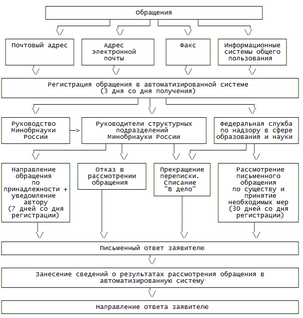 МИНИСТЕРСТВА ОБРАЗОВАНИЯ И НАУКИ РОССИЙСКОЙ ФЕДЕРАЦИИ ПО ПРЕДОСТАВЛЕНИЮ ГОСУДАРСТВЕННОЙ УСЛУГИ ПО ОРГАНИЗАЦИИ ПРИЕМА ГРАЖДАН, ОБЕСПЕЧЕНИЮ СВОЕВРЕМЕННОГО И ПОЛНОГО РАССМОТРЕНИЯ УСТНЫХ И ПИСЬМЕННЫХ ОБРАЩЕНИЙ ГРАЖДАН, ПРИНЯТИЮ ПО НИМ РЕШЕНИЙ И НАПРАВЛЕНИЮ ОТВЕТОВ В УСТАНОВЛЕННЫЙ ЗАКОНОДАТЕЛЬСТВОМ РОССИЙСКОЙ ФЕДЕРАЦИИ СРОК