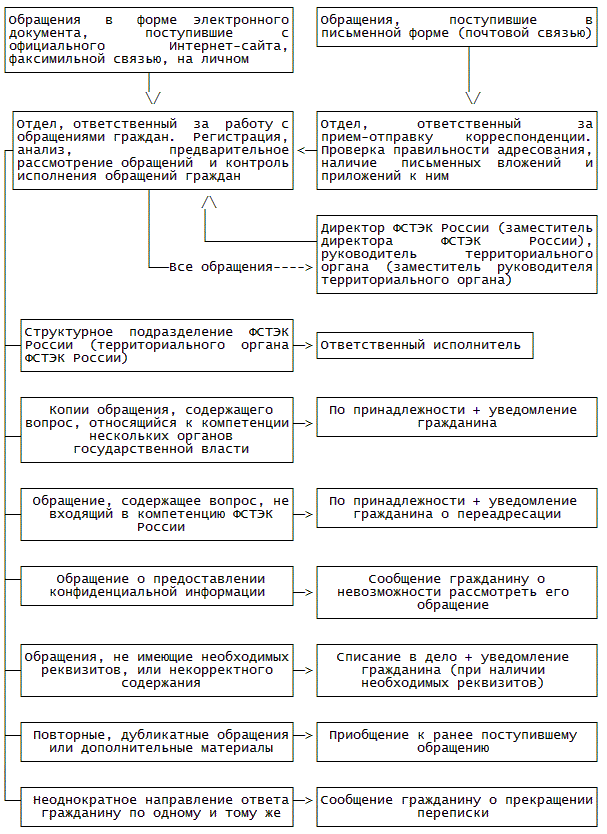 24.12. Контроль за организацией личного приема и учет обращений граждан, рассмотренных на личном приеме в ФСТЭК России, ее территориальном органе, осуществляются структурными подразделениями, ответственными за работу с обращениями граждан.