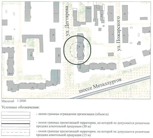 СХЕМА ГРАНИЦ ТЕРРИТОРИИ, НА КОТОРОЙ НЕ ДОПУСКАЕТСЯ РОЗНИЧНАЯ ПРОДАЖА АЛКОГОЛЬНОЙ ПРОДУКЦИИ, ПРИЛЕГАЮЩЕЙ К ООО "МАКВИС" ПО АДРЕСУ: Г. ЧЕЛЯБИНСК, МЕТАЛЛУРГИЧЕСКИЙ РАЙОН, УЛ. ДЕГТЯРЕВА, 75 (НЕЖИЛОЕ ПОМЕЩЕНИЕ N 1 (КЛИНИКО-ДИАГНОСТИЧЕСКИЙ ЦЕНТР))