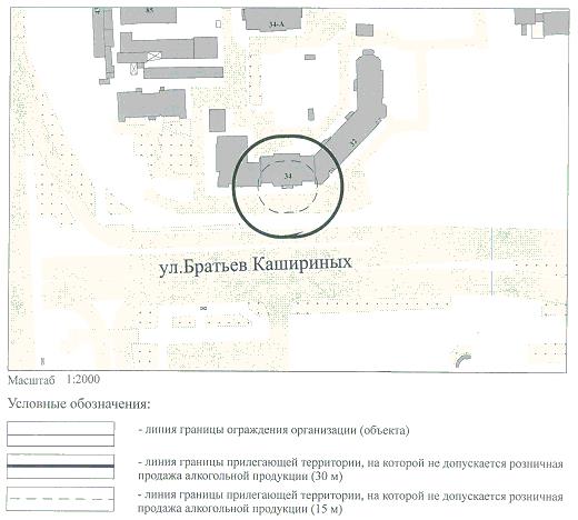 СХЕМА ГРАНИЦ ТЕРРИТОРИИ, НА КОТОРОЙ НЕ ДОПУСКАЕТСЯ РОЗНИЧНАЯ ПРОДАЖА АЛКОГОЛЬНОЙ ПРОДУКЦИИ, ПРИЛЕГАЮЩЕЙ К ООО "АЛЛЕРГОСТОП" ЦЕНТР ПРОФИЛАКТИКИ И ЛЕЧЕНИЯ АЛЛЕРГИИ И АСТМЫ ПО АДРЕСУ: Г. ЧЕЛЯБИНСК, КАЛИНИНСКИЙ РАЙОН, УЛ. БРАТЬЕВ КАШИРИНЫХ, 34 (НЕЖИЛОЕ ПОМЕЩЕНИЕ N 5)