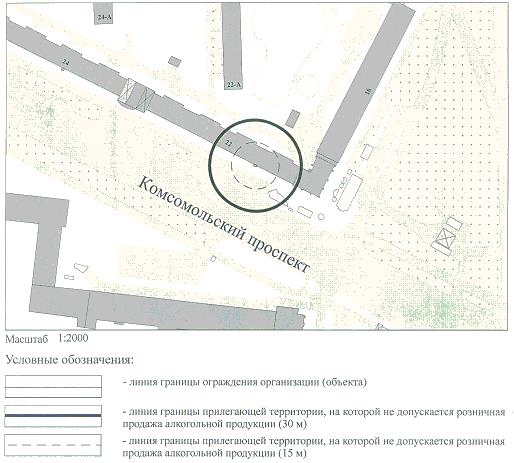СХЕМА ГРАНИЦ ТЕРРИТОРИИ, НА КОТОРОЙ НЕ ДОПУСКАЕТСЯ РОЗНИЧНАЯ ПРОДАЖА АЛКОГОЛЬНОЙ ПРОДУКЦИИ, ПРИЛЕГАЮЩЕЙ К ООО "ПРАКТИК" ПО АДРЕСУ: Г. ЧЕЛЯБИНСК, КУРЧАТОВСКИЙ РАЙОН, КОМСОМОЛЬСКИЙ ПРОСПЕКТ, 22 (НЕЖИЛОЕ ПОМЕЩЕНИЕ N 13)