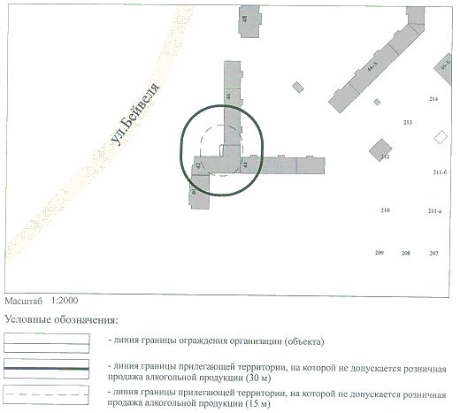 СХЕМА ГРАНИЦ ТЕРРИТОРИИ, НА КОТОРОЙ НЕ ДОПУСКАЕТСЯ РОЗНИЧНАЯ ПРОДАЖА АЛКОГОЛЬНОЙ ПРОДУКЦИИ, ПРИЛЕГАЮЩЕЙ К ООО "ВИТАСМАЙЛ" ПО АДРЕСУ: Г. ЧЕЛЯБИНСК, КУРЧАТОВСКИЙ РАЙОН, УЛ. БЕЙВЕЛЯ, 42 (НЕЖИЛОЕ ПОМЕЩЕНИЕ N 6)