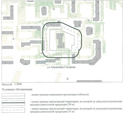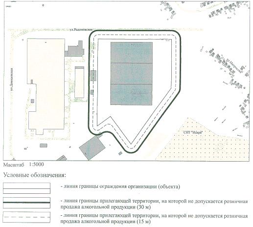СХЕМА ГРАНИЦ ТЕРРИТОРИИ, НА КОТОРОЙ НЕ ДОПУСКАЕТСЯ РОЗНИЧНАЯ ПРОДАЖА АЛКОГОЛЬНОЙ ПРОДУКЦИИ, ПРИЛЕГАЮЩЕЙ К АО "ОБЛАСТНОЙ АПТЕЧНЫЙ СКЛАД" ПО АДРЕСУ: Г. ЧЕЛЯБИНСК, КУРЧАТОВСКИЙ РАЙОН, УЛ. РАДОНЕЖСКАЯ, 9 (НЕЖИЛОЕ ПОМЕЩЕНИЕ N 1)