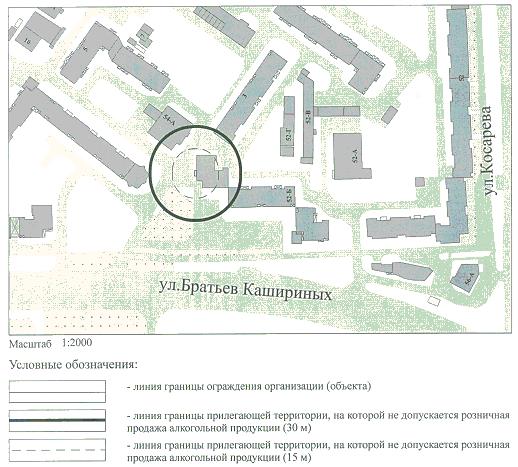 СХЕМА ГРАНИЦ ТЕРРИТОРИИ, НА КОТОРОЙ НЕ ДОПУСКАЕТСЯ РОЗНИЧНАЯ ПРОДАЖА АЛКОГОЛЬНОЙ ПРОДУКЦИИ, ПРИЛЕГАЮЩЕЙ К ООО "БРУАЛИ СМАЙЛ" ПО АДРЕСУ: Г. ЧЕЛЯБИНСК, КАЛИНИНСКИЙ РАЙОН, УЛ. КОСАРЕВА, 52-Б (НЕЖИЛОЕ ПОМЕЩЕНИЕ N 2)