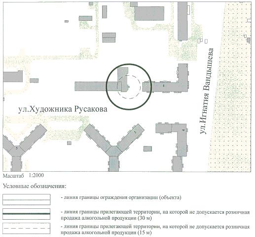 СХЕМА ГРАНИЦ ТЕРРИТОРИИ, НА КОТОРОЙ НЕ ДОПУСКАЕТСЯ РОЗНИЧНАЯ ПРОДАЖА АЛКОГОЛЬНОЙ ПРОДУКЦИИ, ПРИЛЕГАЮЩЕЙ К МКУ "СОЦИАЛЬНЫЙ ДОМ ВЕТЕРАНОВ" ПО АДРЕСУ: Г. ЧЕЛЯБИНСК, КАЛИНИНСКИЙ РАЙОН, УЛ. ХУДОЖНИКА РУСАКОВА, 4