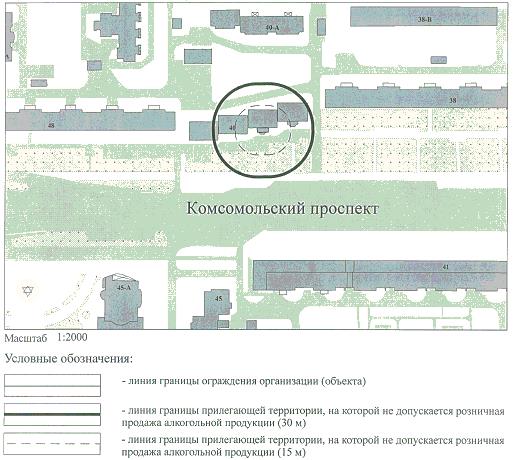 СХЕМА ГРАНИЦ ТЕРРИТОРИИ, НА КОТОРОЙ НЕ ДОПУСКАЕТСЯ РОЗНИЧНАЯ ПРОДАЖА АЛКОГОЛЬНОЙ ПРОДУКЦИИ, ПРИЛЕГАЮЩЕЙ К ООО "БЛЕСК" ПО АДРЕСУ: Г. ЧЕЛЯБИНСК, КУРЧАТОВСКИЙ РАЙОН, КОМСОМОЛЬСКИЙ ПР., 40
