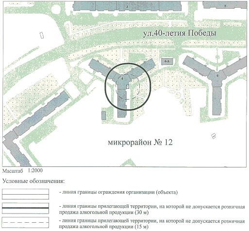 СХЕМА ГРАНИЦ ТЕРРИТОРИИ, НА КОТОРОЙ НЕ ДОПУСКАЕТСЯ РОЗНИЧНАЯ ПРОДАЖА АЛКОГОЛЬНОЙ ПРОДУКЦИИ, ПРИЛЕГАЮЩЕЙ К ООО "УПРАВЛЕНИЕ В МЕДИЦИНЕ" ПО АДРЕСУ: Г. ЧЕЛЯБИНСК, КУРЧАТОВСКИЙ РАЙОН, УЛ. 40-ЛЕТИЯ ПОБЕДЫ, 4