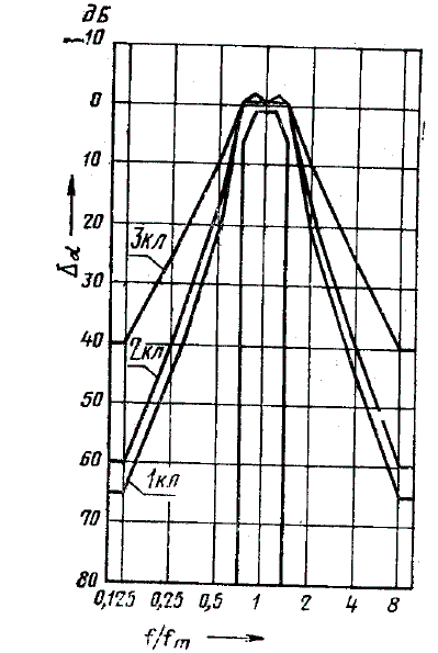 Затухание октавных фильтров 1, 2, 3-го классов точности