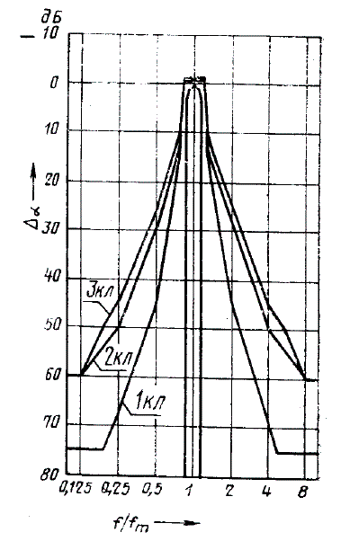 1.9. Затухание октавных и третьоктавных фильтров 1, 2, 3-го классов точности для относительных частот f / f_m должно соответствовать значениям, приведенным в табл. 3 и 4 и на черт. 1 и 2. Расчет затухания фильтра в зависимости от частоты приведен в справочном приложении 2.
