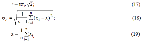 2) при достаточно большом числе n полных измерений значения x_i одного и того же образца испытанной конструкции значение повторяемости определяется по формулам: