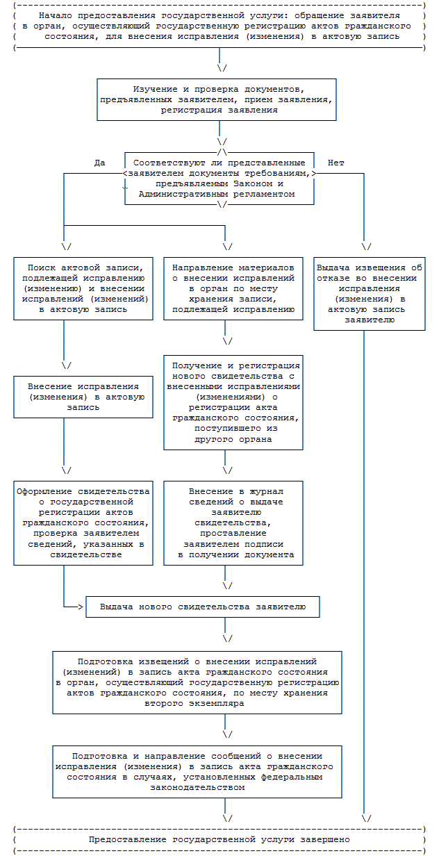 3) при внесении исправлений (изменений) в записи актов гражданского состояния - выдача заявителю нового свидетельства (справки) о государственной регистрации акта гражданского состояния с внесенными исправлениями (изменениями) либо отказ во внесении исправлений (изменений) в запись акта гражданского состояния;