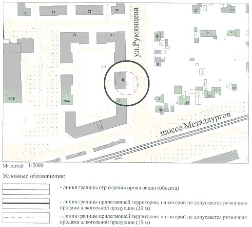 СХЕМА ГРАНИЦ ТЕРРИТОРИИ, НА КОТОРОЙ НЕ ДОПУСКАЕТСЯ РОЗНИЧНАЯ ПРОДАЖА АЛКОГОЛЬНОЙ ПРОДУКЦИИ, ПРИЛЕГАЮЩЕЙ К ООО "ИНВИТРО-УРАЛ" ПО АДРЕСУ: Г. ЧЕЛЯБИНСК, МЕТАЛЛУРГИЧЕСКИЙ РАЙОН, УЛ. РУМЯНЦЕВА, 36 (НЕЖИЛОЕ ПОМЕЩЕНИЕ N 1 (ЦЕНТР ИНДИВИДУАЛЬНОГО ОБСЛУЖИВАНИЯ), ЭТАЖ 1)