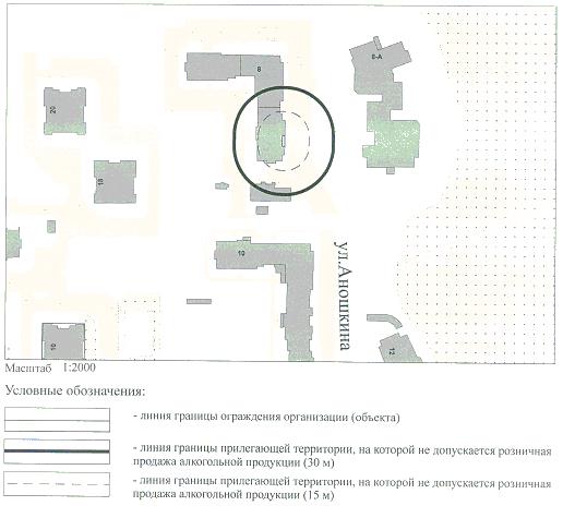 СХЕМА ГРАНИЦ ТЕРРИТОРИИ, НА КОТОРОЙ НЕ ДОПУСКАЕТСЯ РОЗНИЧНАЯ ПРОДАЖА АЛКОГОЛЬНОЙ ПРОДУКЦИИ, ПРИЛЕГАЮЩЕЙ К ООО "СЕМЕЙНАЯ КЛИНИКА АЛЕКСАНДРОВСКАЯ" ПО АДРЕСУ: Г. ЧЕЛЯБИНСК, КУРЧАТОВСКИЙ РАЙОН, УЛ. АНОШКИНА, 8 (НЕЖИЛЫЕ ПОМЕЩЕНИЯ NN 9,11, ЭТАЖ 1,2)