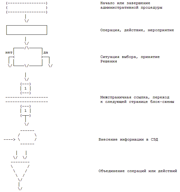 УСЛОВНЫЕ ОБОЗНАЧЕНИЯ НА БЛОК-СХЕМАХ ПОСЛЕДОВАТЕЛЬНОСТИ ДЕЙСТВИЙ ПРИ ИСПОЛНЕНИИ ГОСУДАРСТВЕННОЙ УСЛУГИ