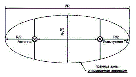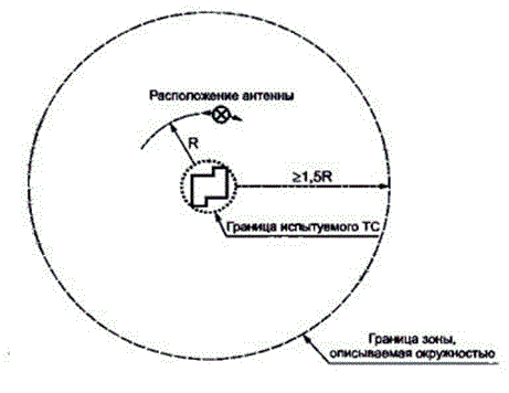 б) круга с размерами, приведенными на рисунке В.2, если испытуемое ТС устанавливают стационарно и измерительную антенну перемещают вокруг него.