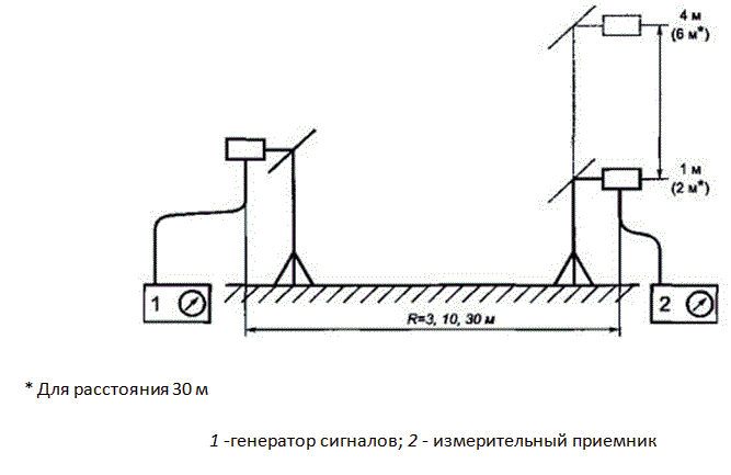Рисунок Г.1 - Схема измерения затухания площадки при горизонтальной поляризации