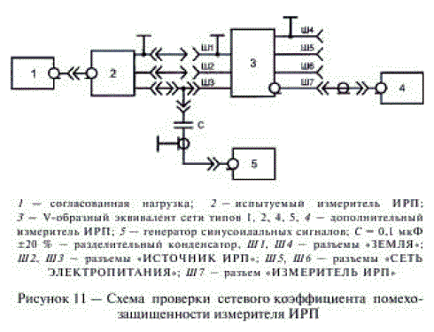 - сетевой коэффициент помехозащищенности измерителя ИРП - по ГОСТ 14777;
