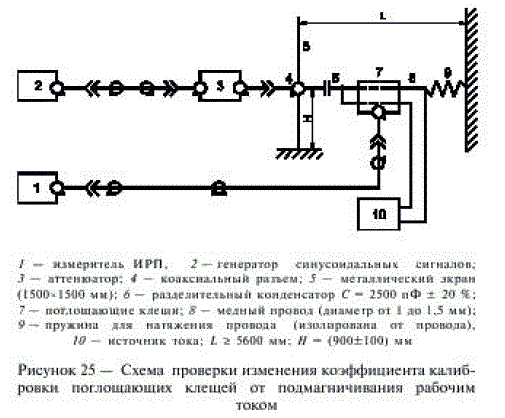 Если ТРА соответствует этим требованиям, по величине тока, наведенного в рамках испытуемой установкой, расположенной в центре ТРА, с точностью до 3 дБ определяют напряженность магнитного поля в децибелах относительно 1 мкА/м по формуле