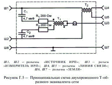 T - -образный эквивалент сети - измерительное устройство, подключаемое к измерителю ИРП и обеспечивающее измерение общего несимметричного напряжения ИРП на линейных зажимах устройств, подключаемых к симметричным двухпроводным линиям связи;