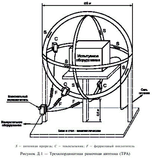 ТРА состоит из трех взаимоперпендикулярных рамочных антенн диаметром 2 м (рисунок Д.1)