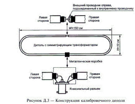 Калибровку ТРА производят измерением тока, наводимого в рамках калибровочным диполем, конструкция которого показана на рисунке Д3.