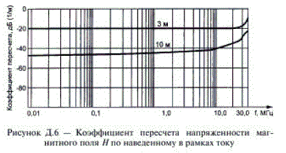 В общем случае коэффициент пересчета является частотнозависимой величиной. Для стандартных расстояний 3 и 10 м коэффициент пересчета представлен на рисунке Д.6.
