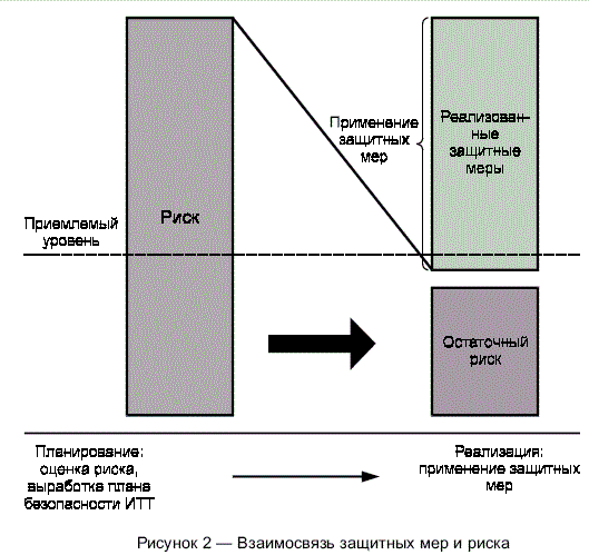 Основываясь на определении угроз и уязвимостей и их комбинации, можно оценить риск и выбрать защитные меры и, тем самым, повысить безопасность активов. Далее необходимо оценивать остаточный риск для того, чтобы определить, адекватно ли защищены активы.