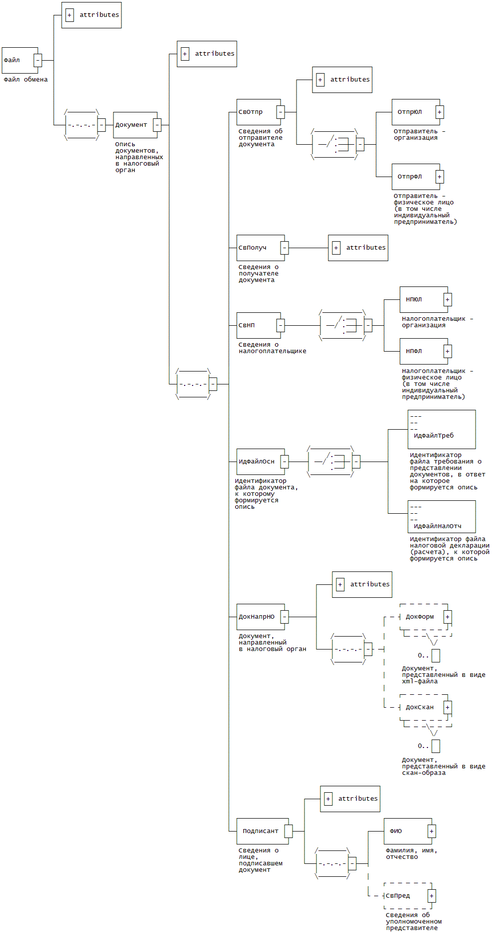 | Документ, представленный в виде xml-файла | ДокФорм | С | | НМ | Состав элемента представлен в табл. 4.8. Обязателен при отсутствии ДокСкан |