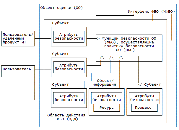 Совокупность всех функций безопасности ОО, которые направлены на осуществление ПБО, определяется как &функции безопасности объекта оценки (ФБО)&. ФБО объединяют функциональные возможности всех аппаратных, программных и программно-аппаратных средств ОО, на которые как непосредственно, так и косвенно возложено обеспечение безопасности.