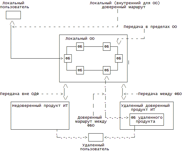 a) политика безопасности "удаленного доверенного продукта ИТ" и ПБО рассматриваемого ОО скоординированы и оценены в административном порядке. Обмен информацией в этом случае назван &передачей между ФБО&, поскольку он осуществляется между ФБО различных доверенных продуктов;