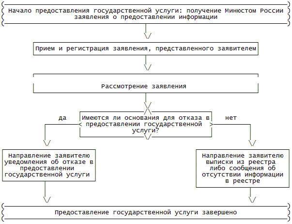 общей структуры последовательности действий при предоставлении Министерством юстиции Российской Федерации государственной услуги по выдаче физическим и юридическим лицам информации, содержащейся в реестре государственных нотариальных контор и контор нотариусов, занимающихся частной практикой