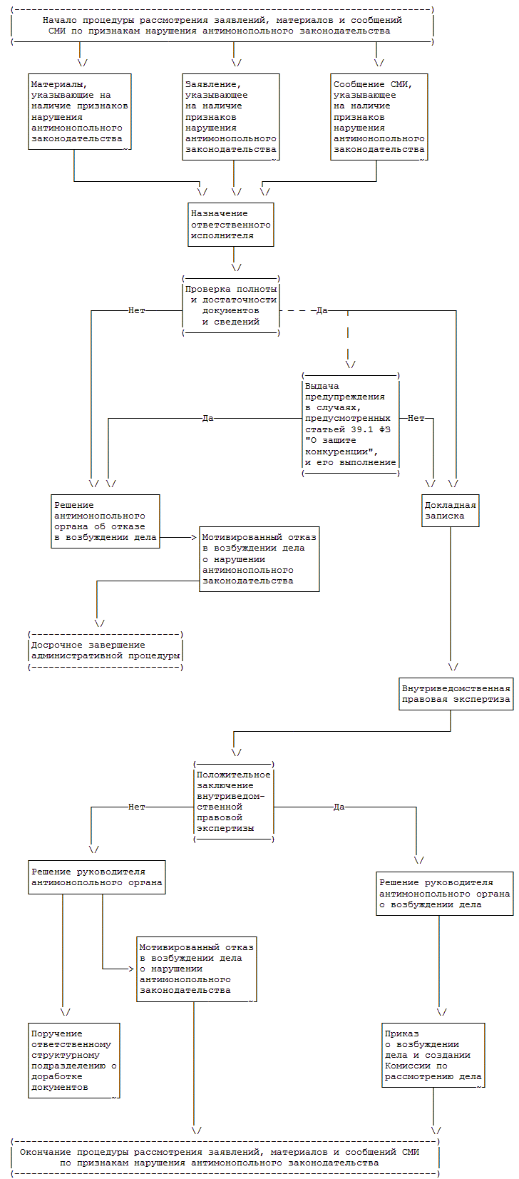 БЛОК-СХЕМА ИСПОЛНЕНИЯ ФАС РОССИИ ГОСУДАРСТВЕННОЙ ФУНКЦИИ ПО ВОЗБУЖДЕНИЮ И РАССМОТРЕНИЮ ДЕЛ О НАРУШЕНИЯХ АНТИМОНОПОЛЬНОГО ЗАКОНОДАТЕЛЬСТВА РОССИЙСКОЙ ФЕДЕРАЦИИ