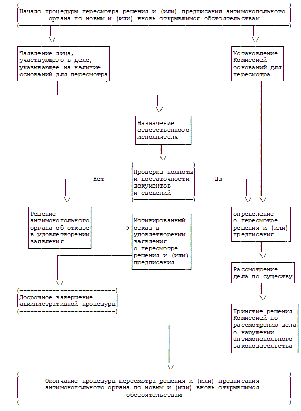 4. Блок-схема административной процедуры "Пересмотр решения и (или) предписания антимонопольного органа по новым и (или) вновь открывшимся обстоятельствам"
