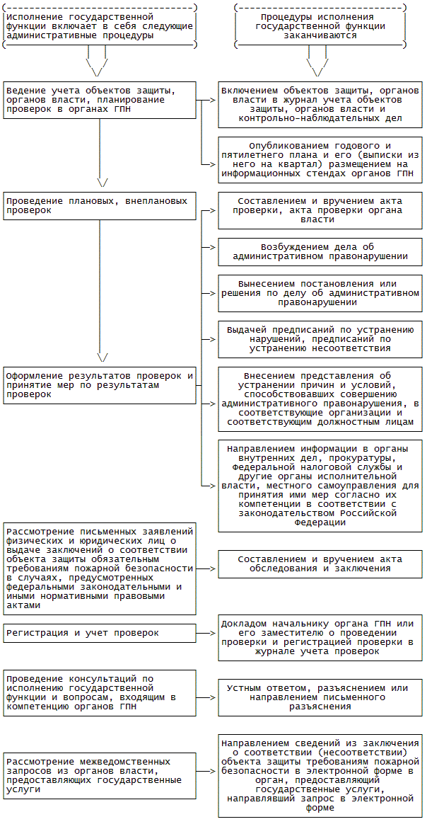 В МЧС России и его территориальных органах государственную функцию посредством организации и проведения проверок деятельности органов государственной власти, органов местного самоуправления (далее - органы власти), учреждений, организаций, крестьянских (фермерских) хозяйств, общественных объединений, иных юридических лиц независимо от их организационно-правовых форм и форм собственности (далее - организации), а также индивидуальных предпринимателей, должностных лиц, граждан Российской Федерации, иностранных граждан, лиц без гражданства (далее - граждане), состояния используемых (эксплуатируемых) ими объектов защиты (далее - проверки), принятия предусмотренных законодательством Российской Федерации мер по пресечению и (или) устранению выявленных нарушений требований, установленных законодательством Российской Федерации о пожарной безопасности (далее - требования пожарной безопасности) осуществляют должностные лица органов государственного пожарного надзора федеральной противопожарной службы Государственной противопожарной службы (далее - органы ГПН).