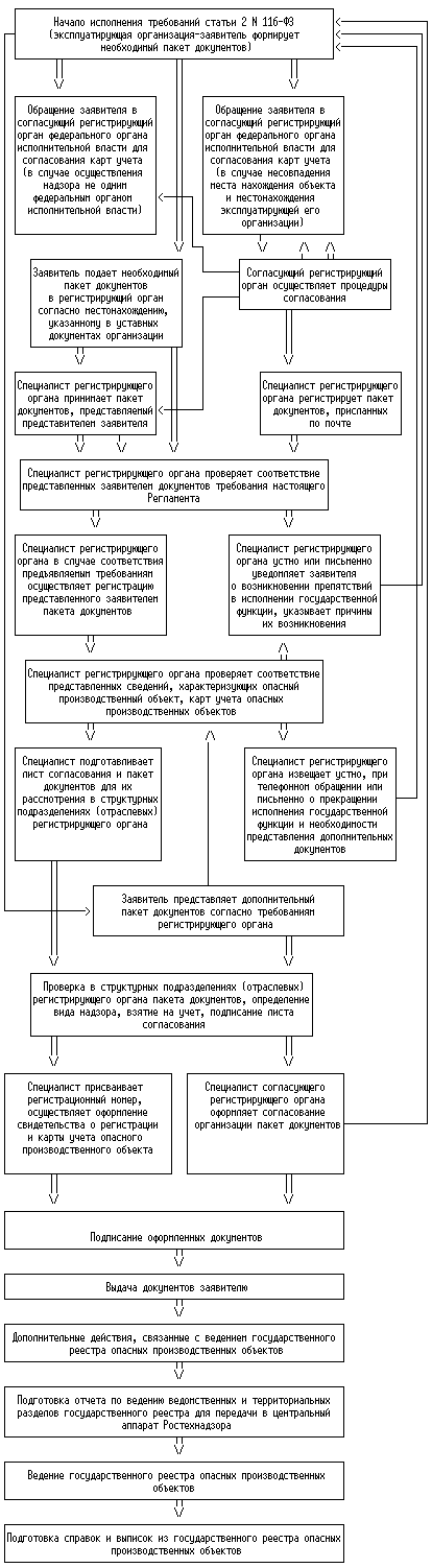 1. Настоящий административный регламент (далее - Регламент) Федеральной службы по экологическому технологическому и атомному надзору (далее - Ростехнадзор) определяет: порядок и сроки осуществления действий (административных процедур) при регистрации опасных производственных объектов и ведении государственного реестра опасных производственных объектов; порядок взаимодействия Ростехнадзора, ее территориальных органов, осуществляющих государственную функцию по регистрации опасных производственных объектов и ведению территориальных разделов государственного реестра опасных производственных объектов с иными федеральными органами исполнительной власти, которым предоставлено право регистрации подведомственных опасных производственных объектов и ведение ведомственных разделов государственного реестра опасных производственных объектов.
