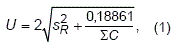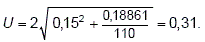 Таким образом, расширенная неопределенность U при коэффициенте охвата 2 (уровень доверия 95 %) будет равна, если использовать уравнение (1):