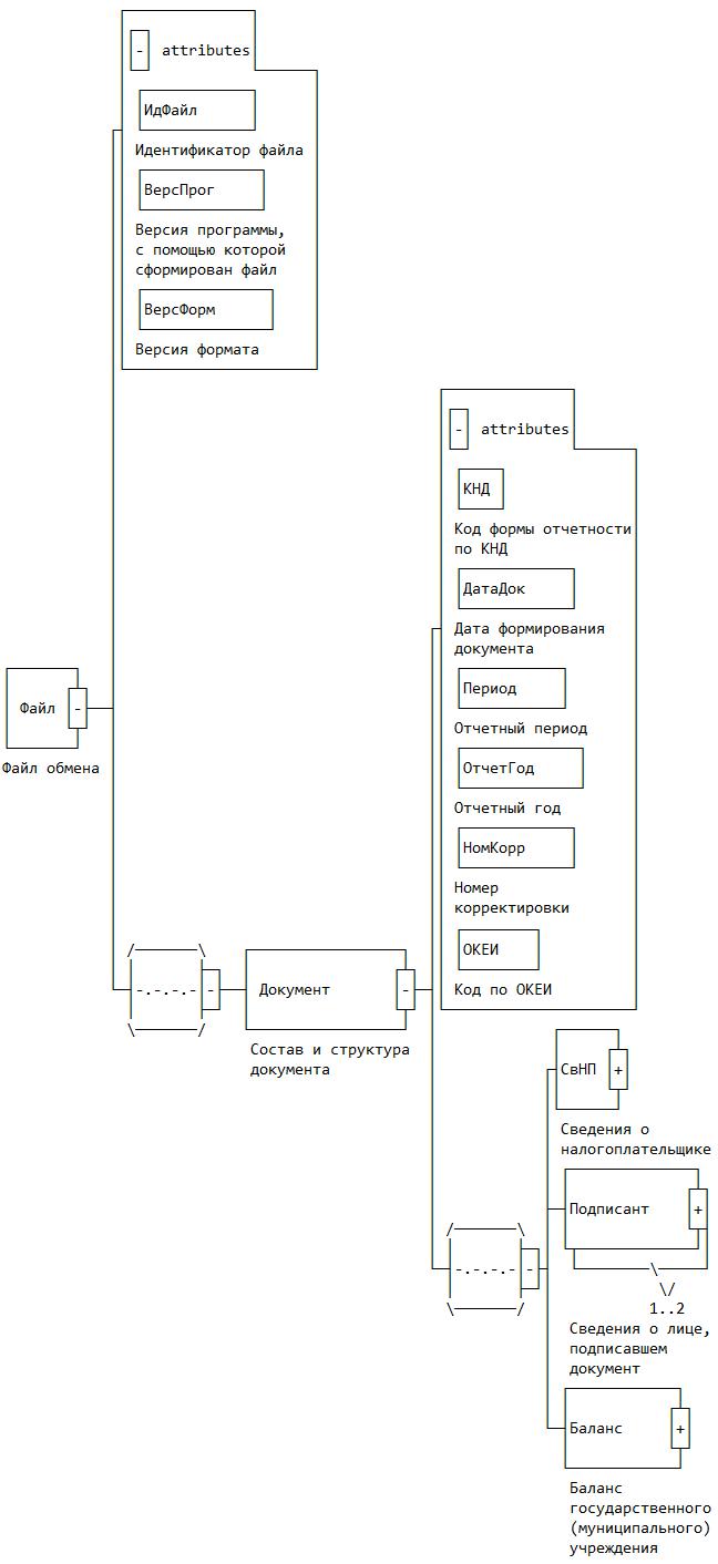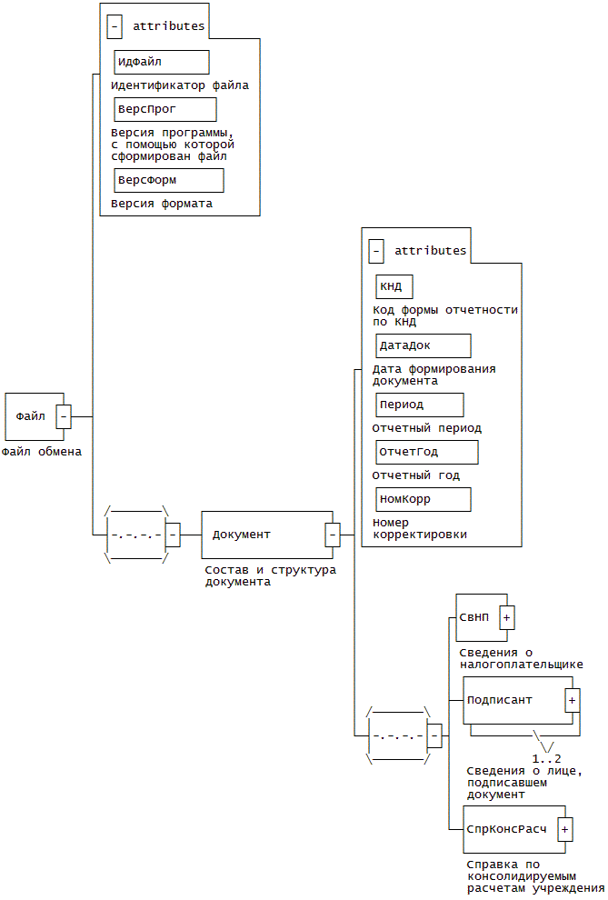XML схема файла обмена приводится отдельным файлом и размещается на сайте Федеральной налоговой службы.